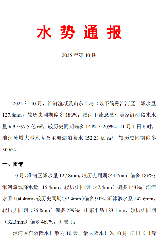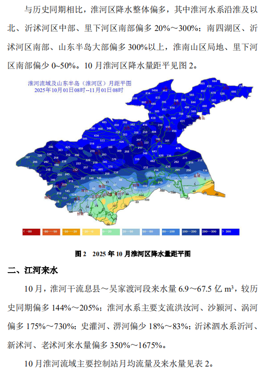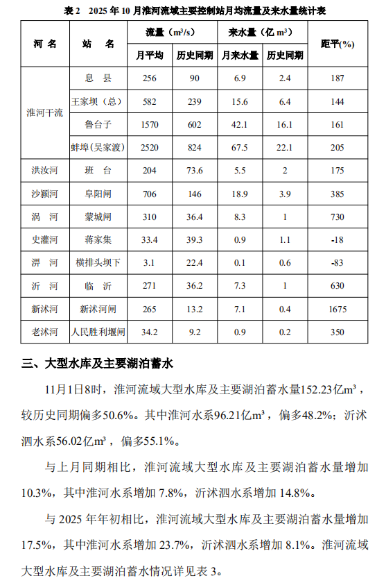 2025年10月淮河流域水势情况通报