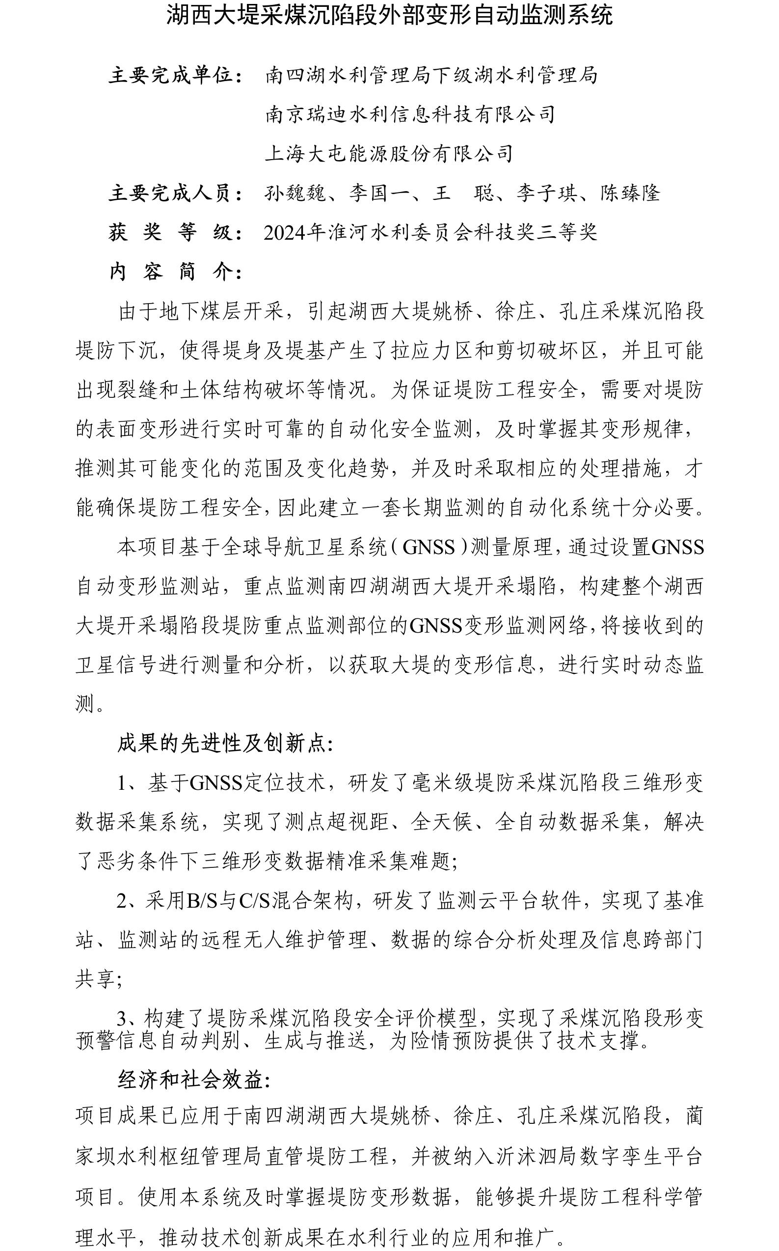 湖西大堤采煤沉陷段外部变形自动监测系统