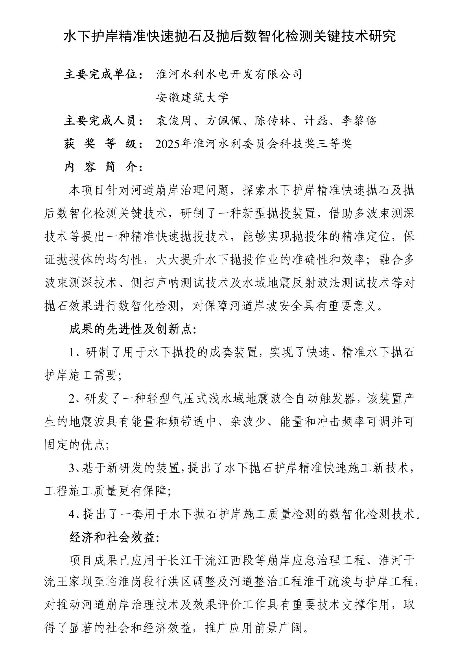 水下护岸精准快速抛石及抛后数智化检测关键技术研究