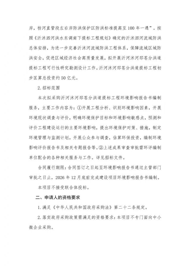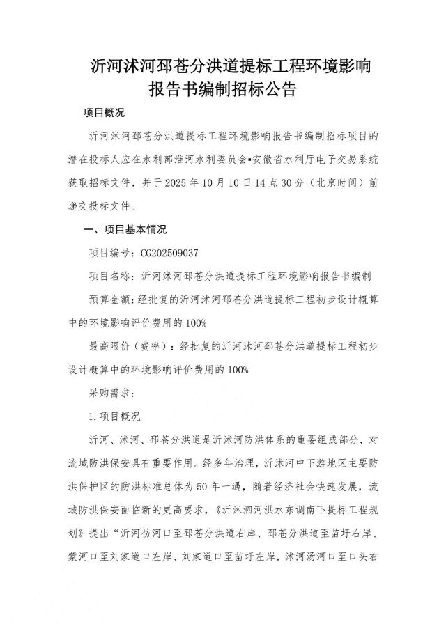 沂河沭河邳苍分洪道提标工程环境影响报告书编制招标公告