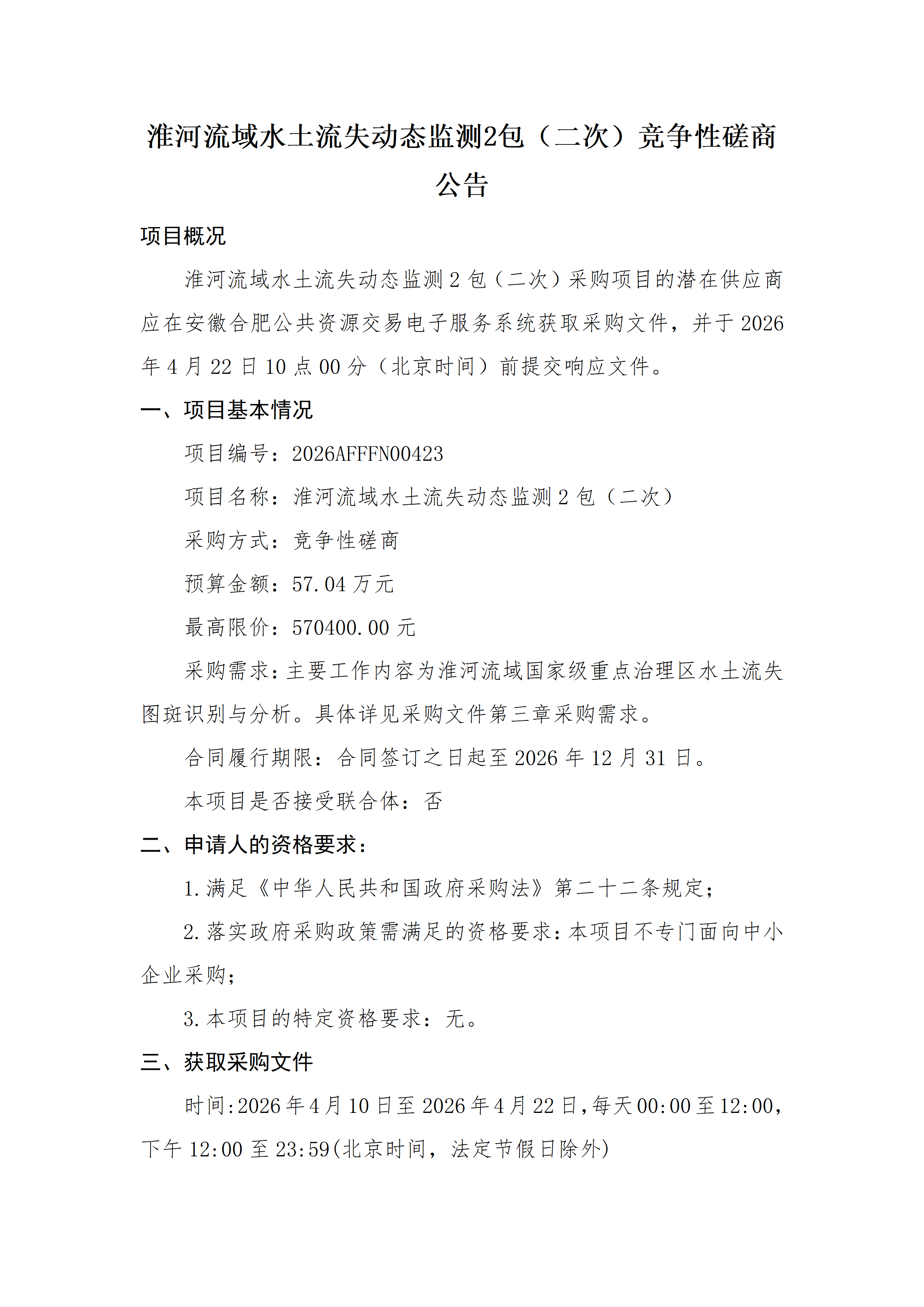 淮河流域水土流失动态监测2包(二次)竞争性磋商公告