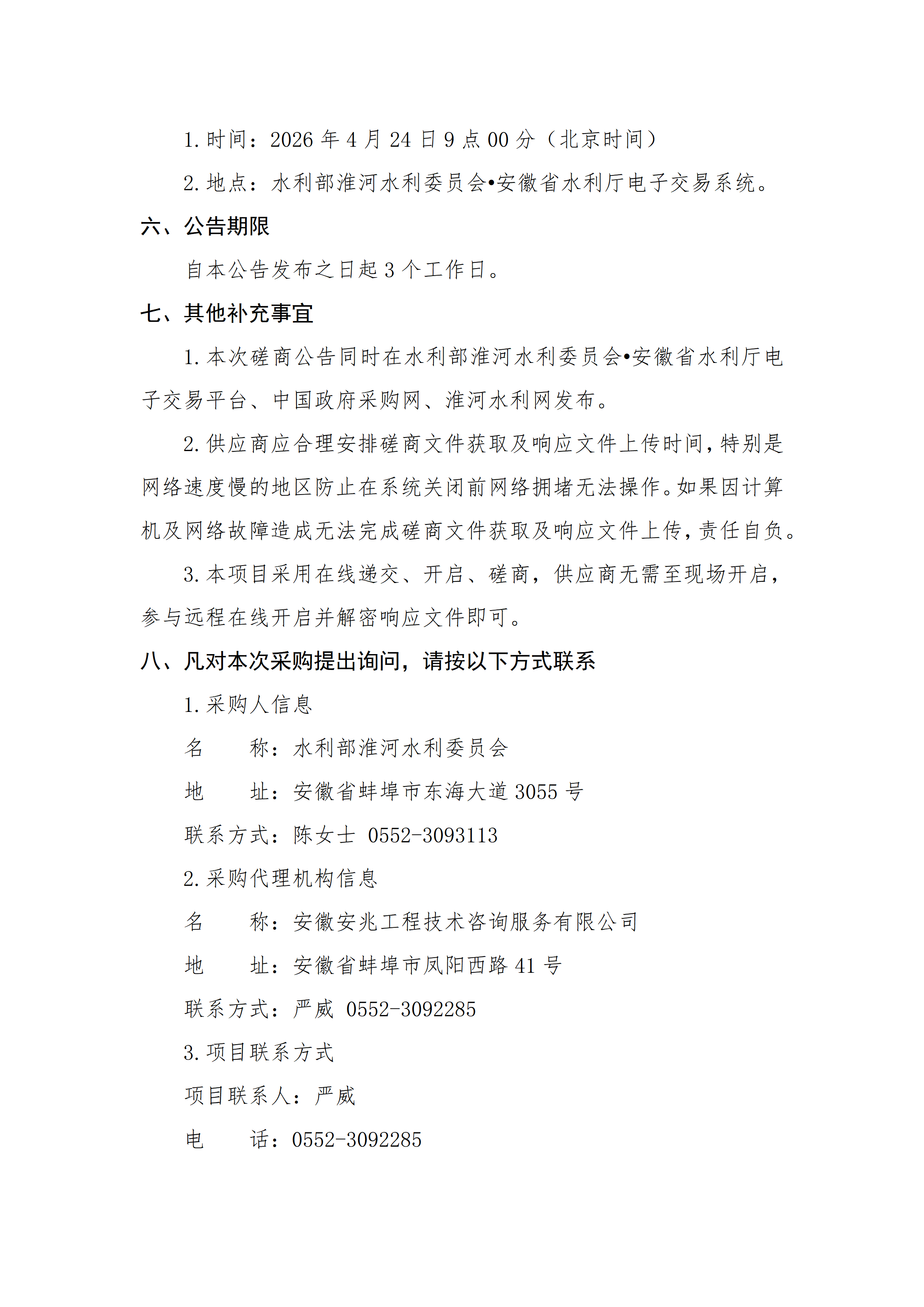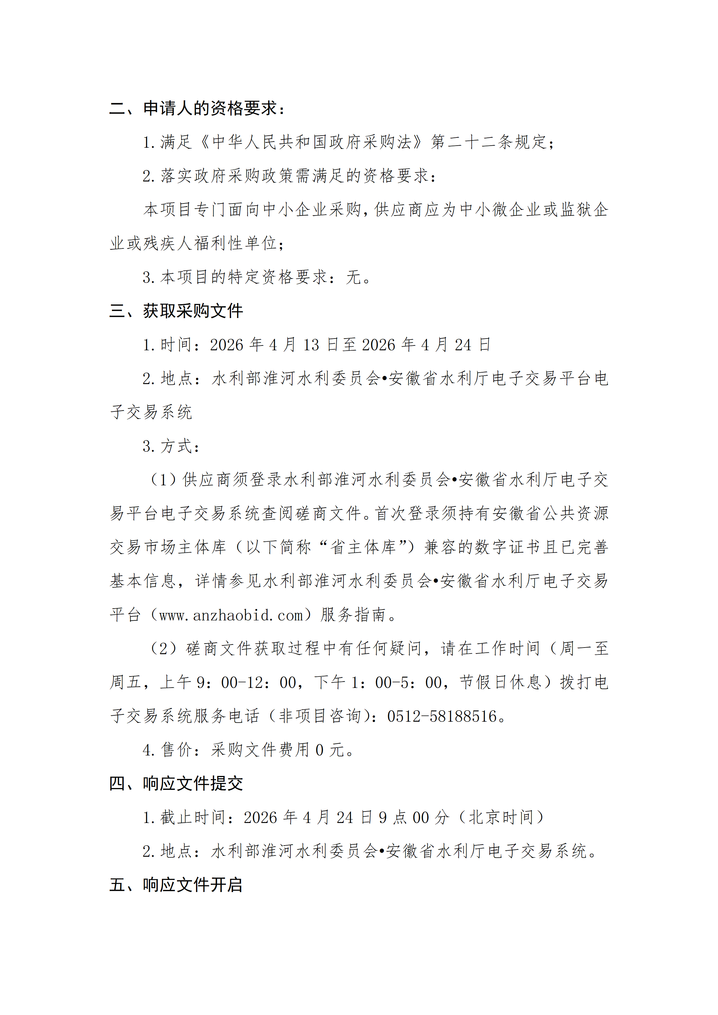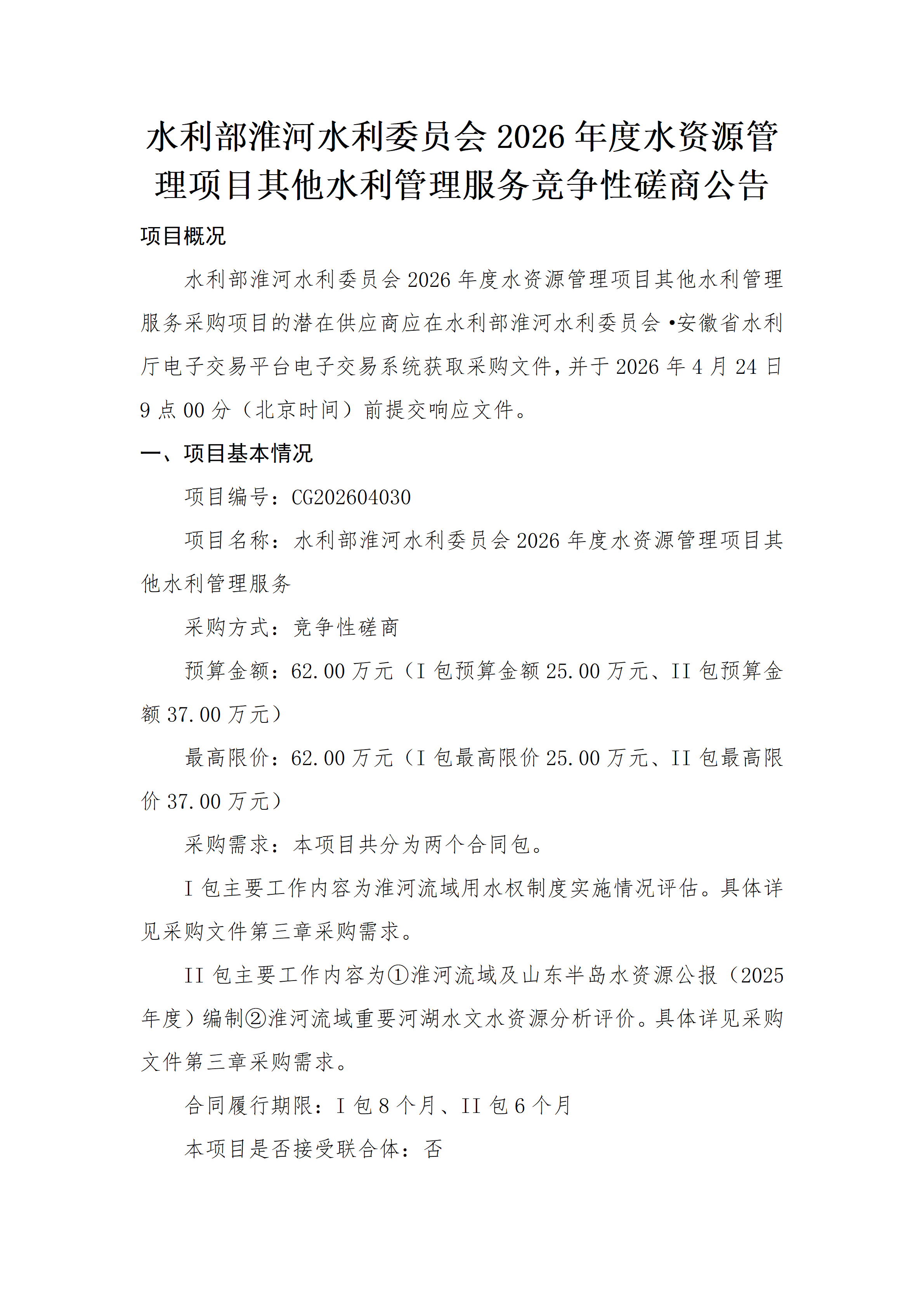 水利部淮河水利委员会2026年度水资源管理项目其他水利管理服务竞争性磋商公告