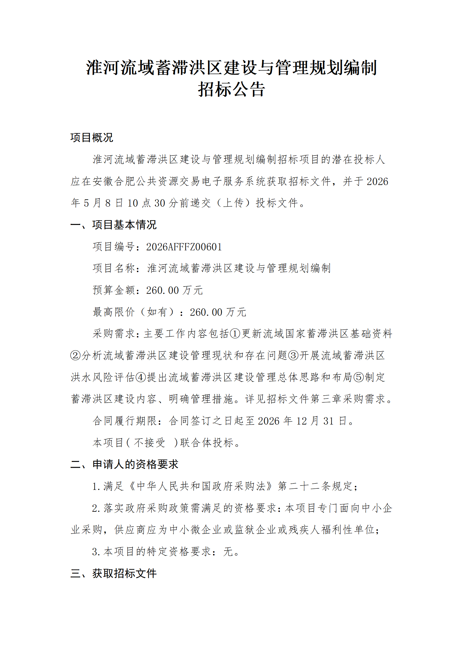 淮河流域蓄滞洪区建设与管理规划编制招标公告