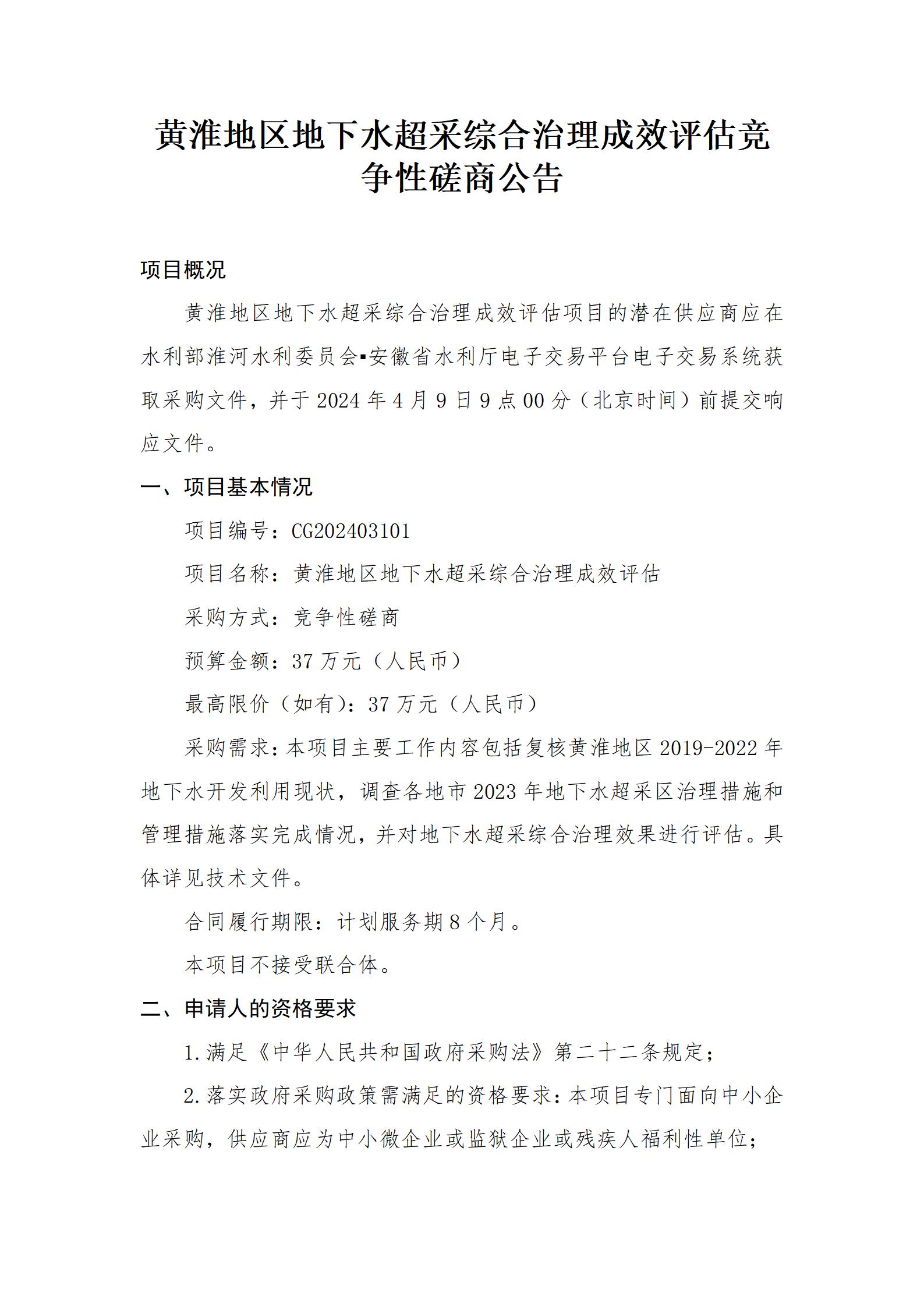 黄淮地区地下水超采综合治理成效评估竞争性磋商公告