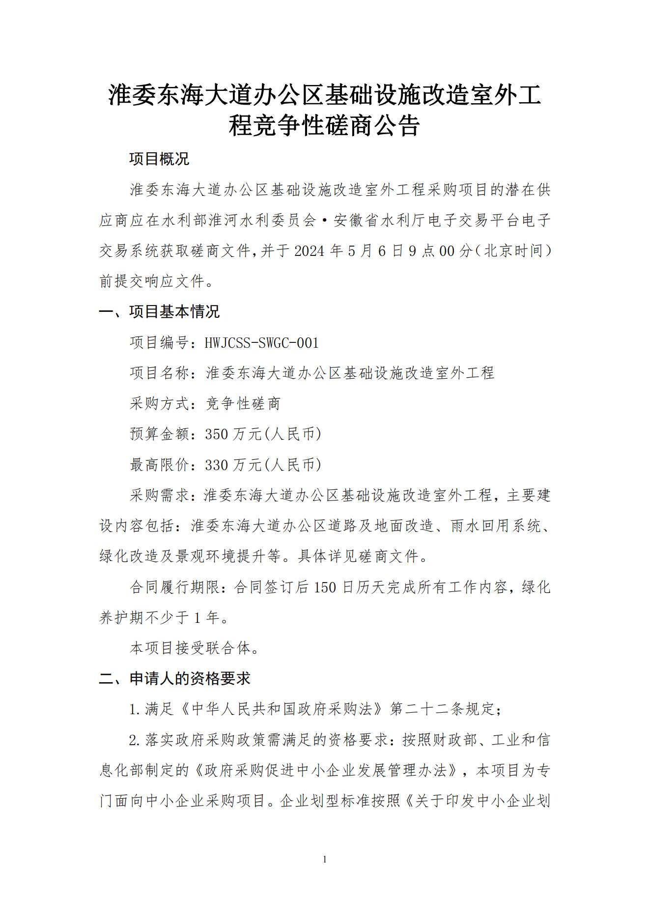 淮委东海大道办公区基础设施改造室外工程竞争性磋商公告