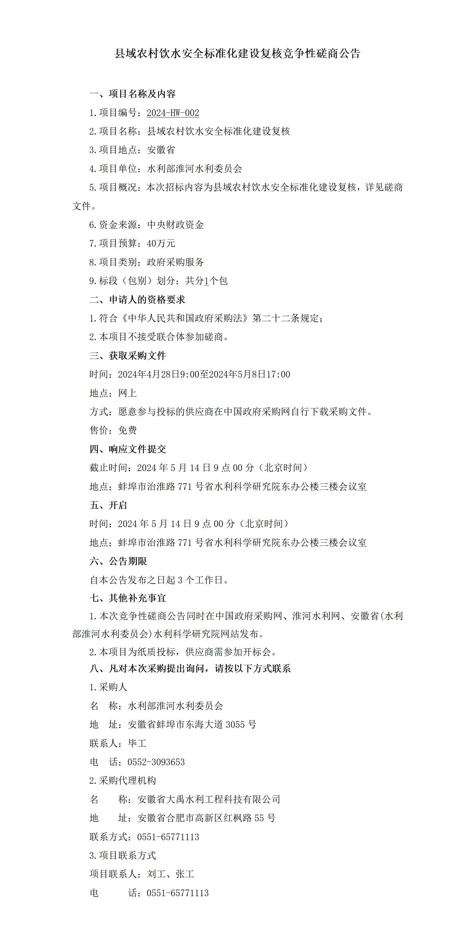 县域农村饮水安全标准化建设复核竞争性磋商公告