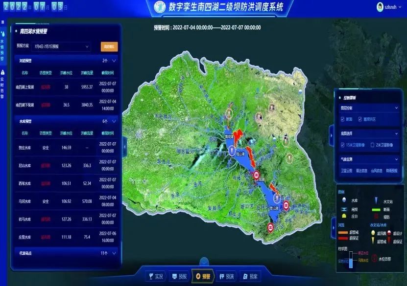 开展数字孪生流域和数字孪生水利工程先行先试,建成高标准的流域三级数据底板,基本建成覆盖流域防洪重点区域的洪水预报调度一体化系统,数字孪生淮河建设先行先试工作荣获水利部“双优”表彰。积极探索“基建+数字孪生”模式,全面启动数字孪生淮干蚌浮段和数字孪生沂沭河上游堤防加固工程建设,集成整合淮河、涡河、沂河等重要河流水资源调度模型,实现17条跨省重点河湖主要控制断面生态流量预警功能。自主研发了暴雨动态时空移植模拟功能,在地图上实现了任意暴雨场景、任意会商情景下的洪水预演。开发自动预报功能,实现了2小时自动更新、全天候实时滚动预报,淮干出山店至正阳关354公里河段3天洪水过程预报仅需1分多钟,洪水预报精度进一步提高。