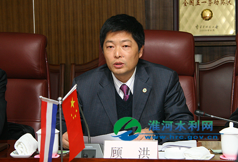 顾洪简要介绍了流域概况和治淮事业取得的成就。在谈到双方合作时,他说,淮河流域虽然已经建成了比较完善的防洪除涝工程体系,但这些工程的调度运用,还需要非工程措施的支持。目前,这些非工程措施主要靠经验模型支持,预警期还有待于延长,预报调度水平、洪水调度方案效果评估精度还有待于提高。多年来,由于淮河行蓄洪区使用频繁,淮委具有了丰富的运用行蓄洪区和组织人员撤退的经验。但相比较荷兰在防洪组织机构、防洪保护措施、洪水信息采集系统、洪水预报调度和预警系统等方面的建设经验,有许多还是值得我们借鉴学习的。希望通过交流,双方能在洪水预报预警、洪水灾情评估、蓄滞洪区运用和人员撤退安置等方面展开合作研究工作;同时,希望双方能把技术优势、数据优势、工作经验优势发挥出来,为防洪减灾工作提供更加坚实地支撑。