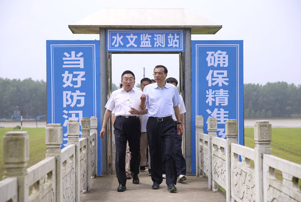党中央、国务院对安徽防汛工作高度关注、十分牵挂。 7月5日,中共中央政治局常委、国务院总理李克强,在中共中央政治局委员、国务院副总理汪洋,国务委员兼国务院秘书长杨晶等陪同下,来到我省考察指导淮河防汛工作,深入了解群众生产生活情况,给正在全力防汛抗灾的江淮儿女带来亲切关怀和巨大鼓舞。省委书记王学军、省长李锦斌陪同考察。