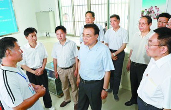 沿着长长的栈道,李克强来到位于淮河河道上方的监测室内。正值汛期,工作人员加大了每日测量水位、流量、泥沙等水文数据的频次。