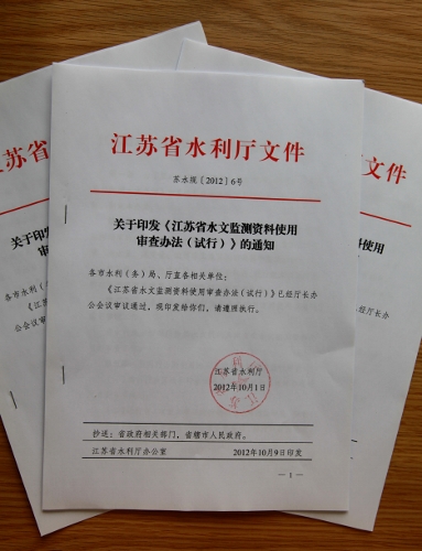 日前,江苏省水利厅印发《江苏省水文监测资料使用审查办法(试行)》,该《办法》将于2012年11月1日起施行。这为江苏省行政区域内编制重要规划、进行重点项目建设和水资源管理等使用水文监测资料提供了规范性依据。
