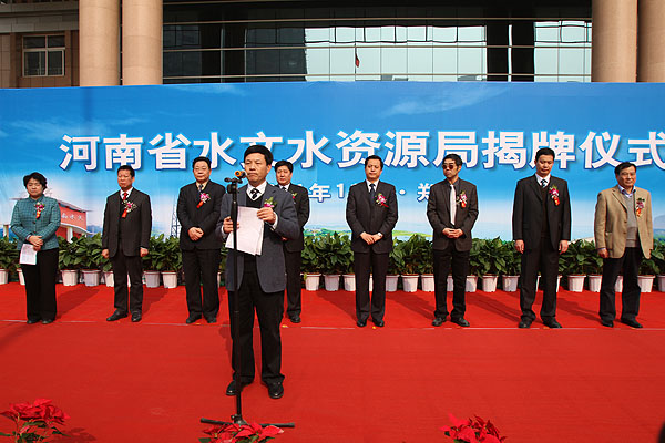 揭牌仪式由省水文水资源局局长原喜琴主持,省水利厅党组成员、副厅长王建武宣读《河南省机构编制委员会关于印发河南省水文水资源局机构编制方案的通知》,省水利厅党组成员、副厅长王国栋讲话,省水文水资源局党委书记潘涛发言。