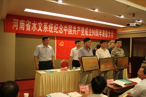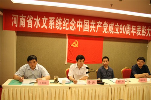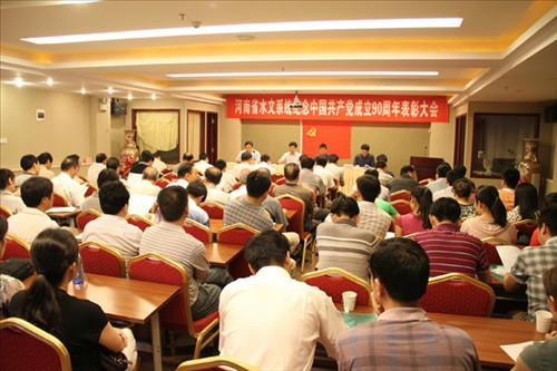 为庆祝中国共产党成立90周年,2011年6月30日上午,河南省水文系统隆重召开庆祝中国共产党成立90周年表彰大会,来自全系统19个党支部的书记、省局机关全体党员参加了会议。