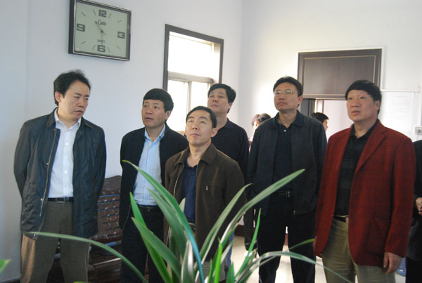 检查组认真查看墙上图表
