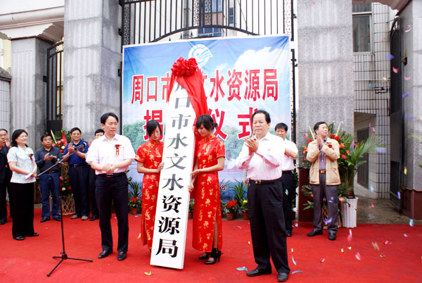 2009年5月25日上午,周口市水文水资源局揭牌仪式在周口市水文水资源局大门前隆重举行,这是践行科学发展观,深化水文改革的又一新举措。周口水文水资源局从此实现了省厅和地市双重管理,这一模式的实现为周口水文事业的发展,做大做强水文事业,更好地为地方提供优质服务打下了坚实的基础。