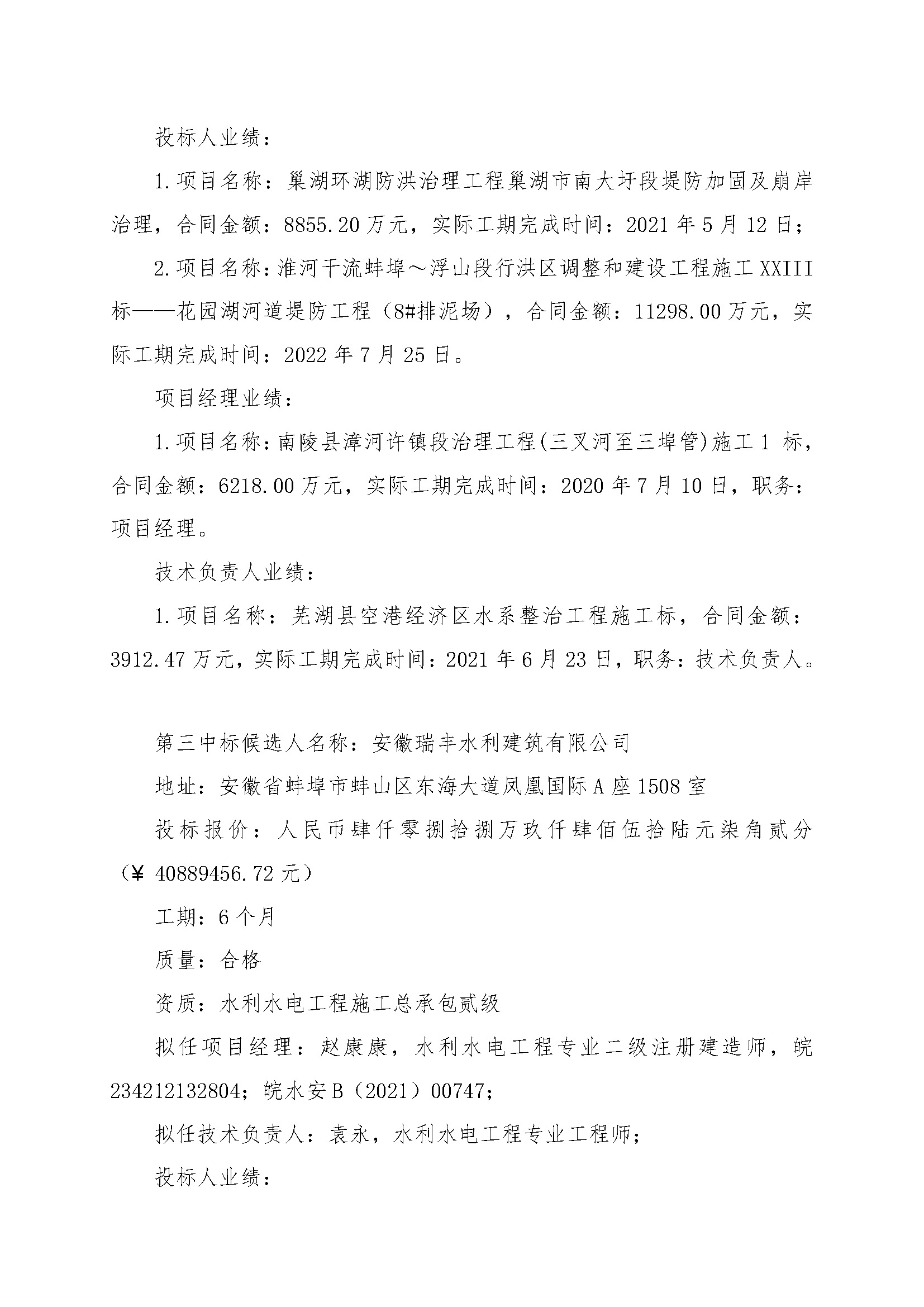 第三中标候选人名称:安徽瑞丰水利建筑有限公司