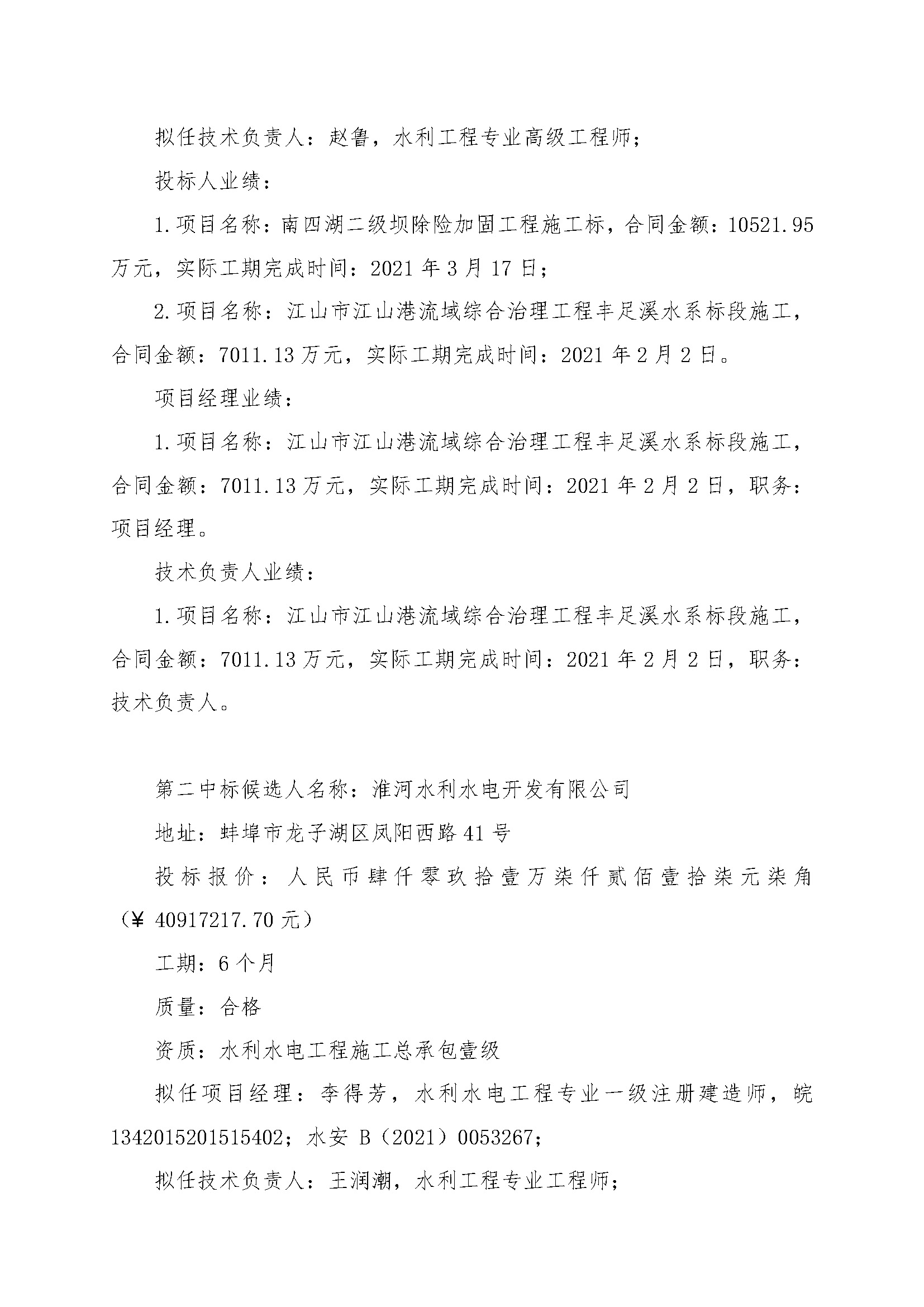 第二中标候选人名称:淮河水利水电开发有限公司