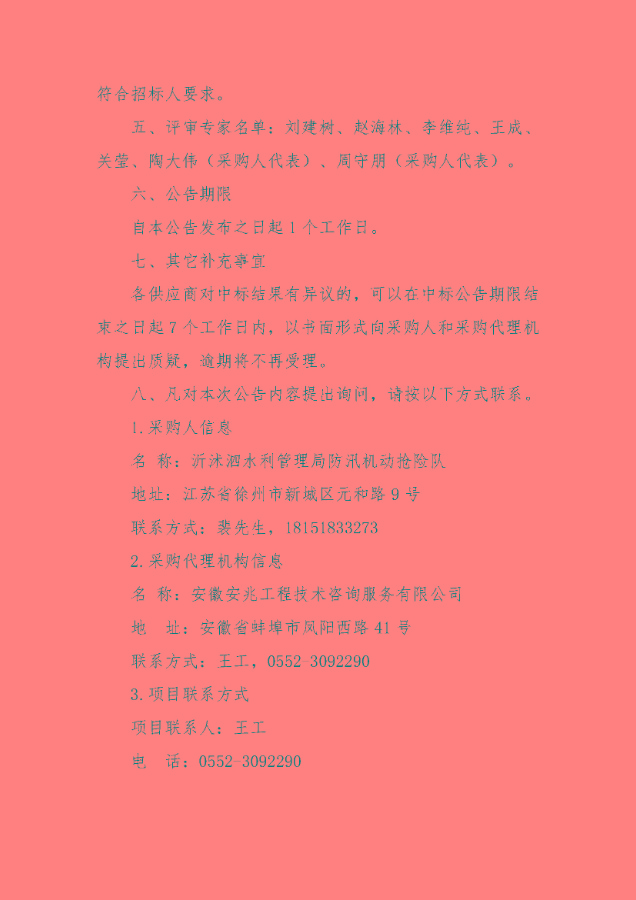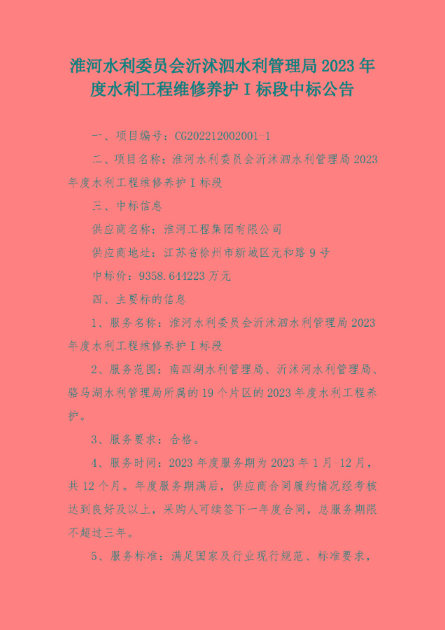 淮河水利委员会沂沭泗水利管理局2023年度水利工程维修养护I标段中标公告