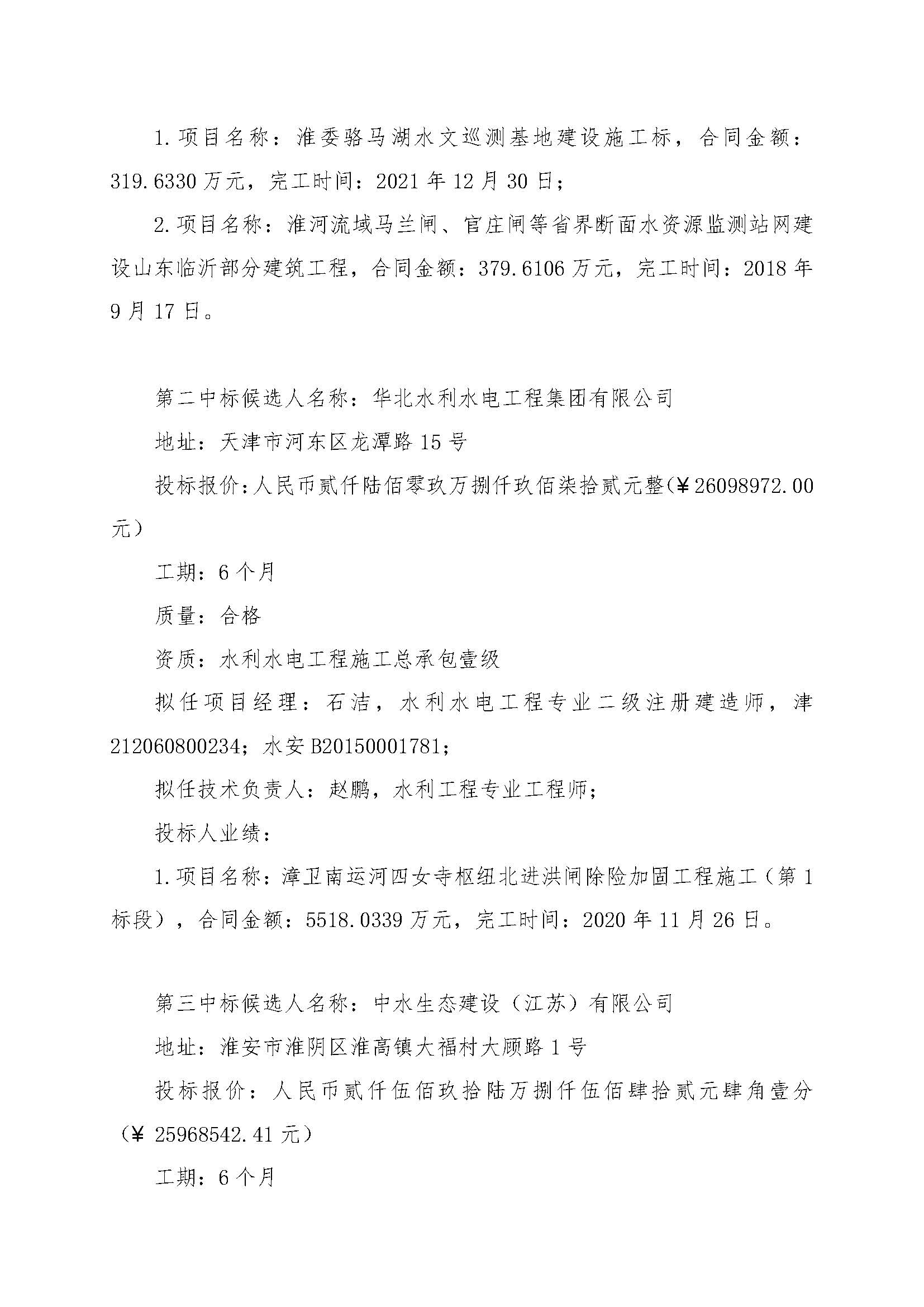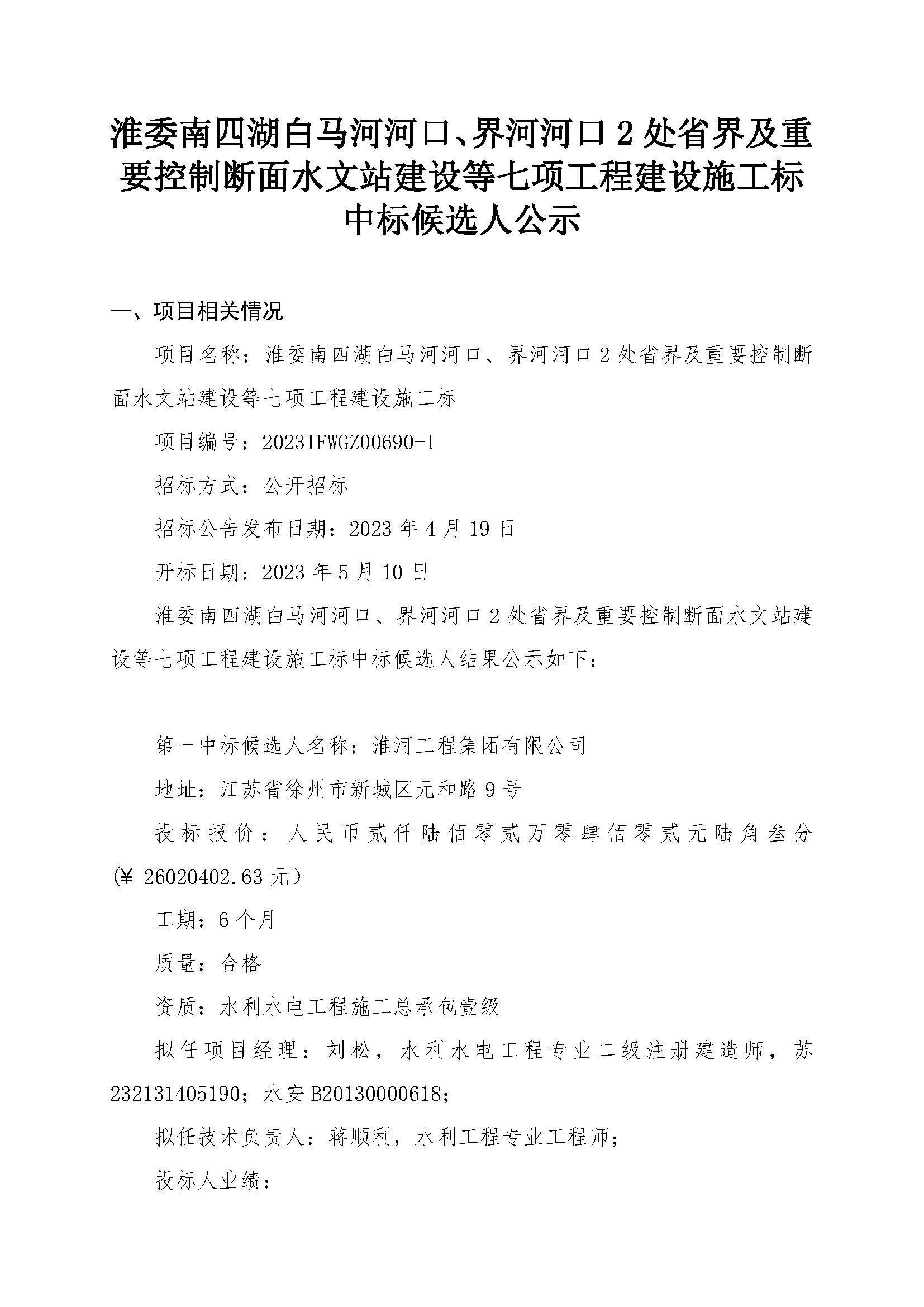 淮委南四湖白马河河口、界河河口2处省界及重要控制断面水文站建设等七项工程建设施工标中标候选人公示