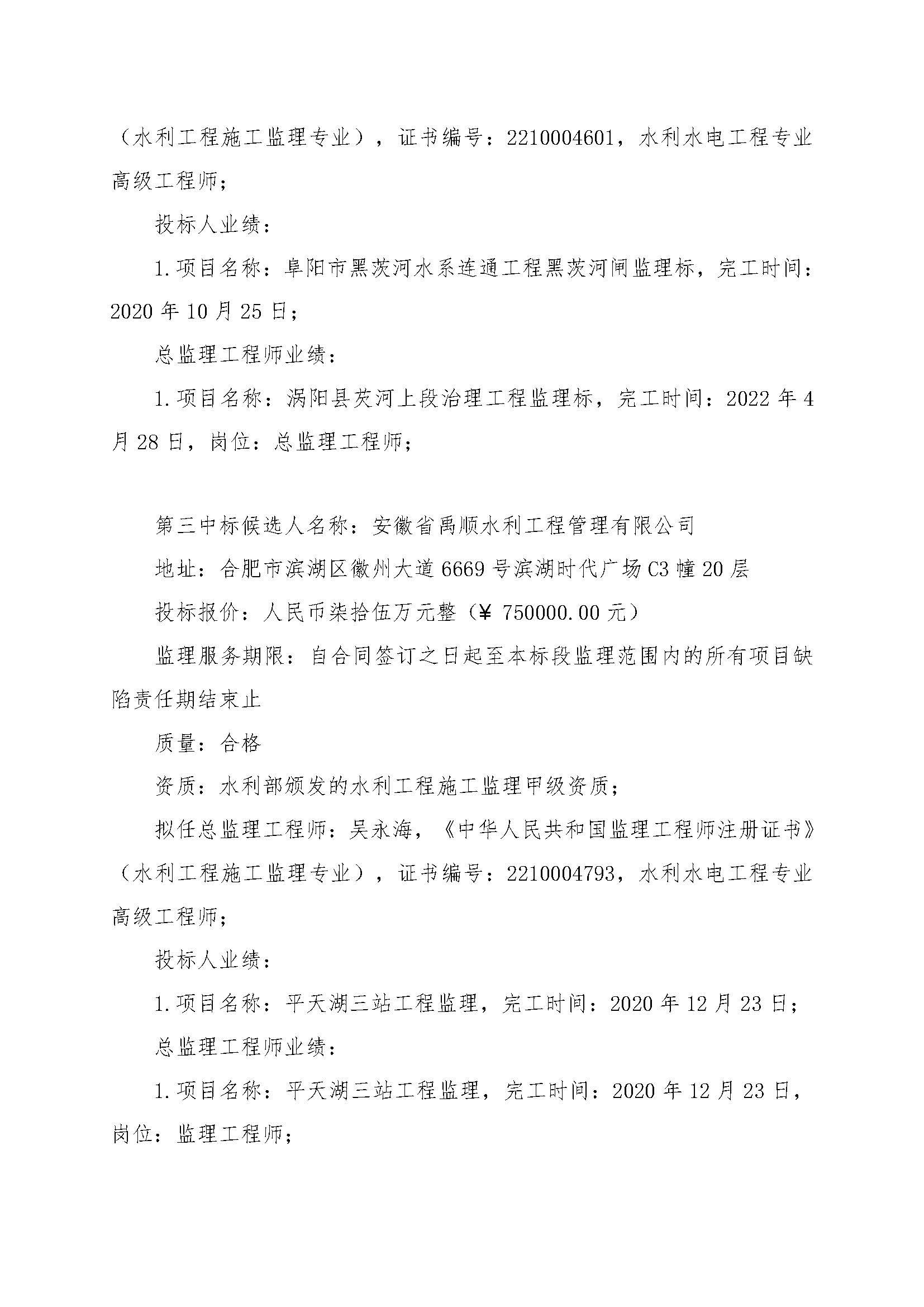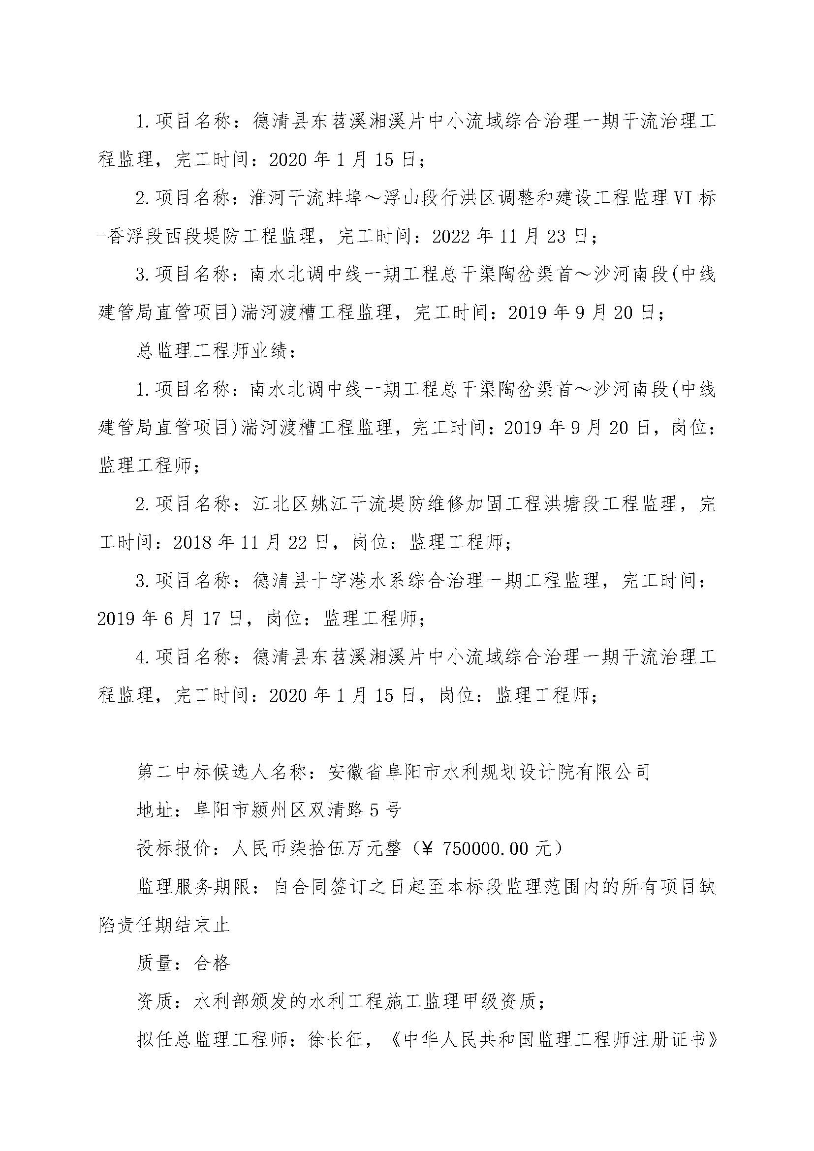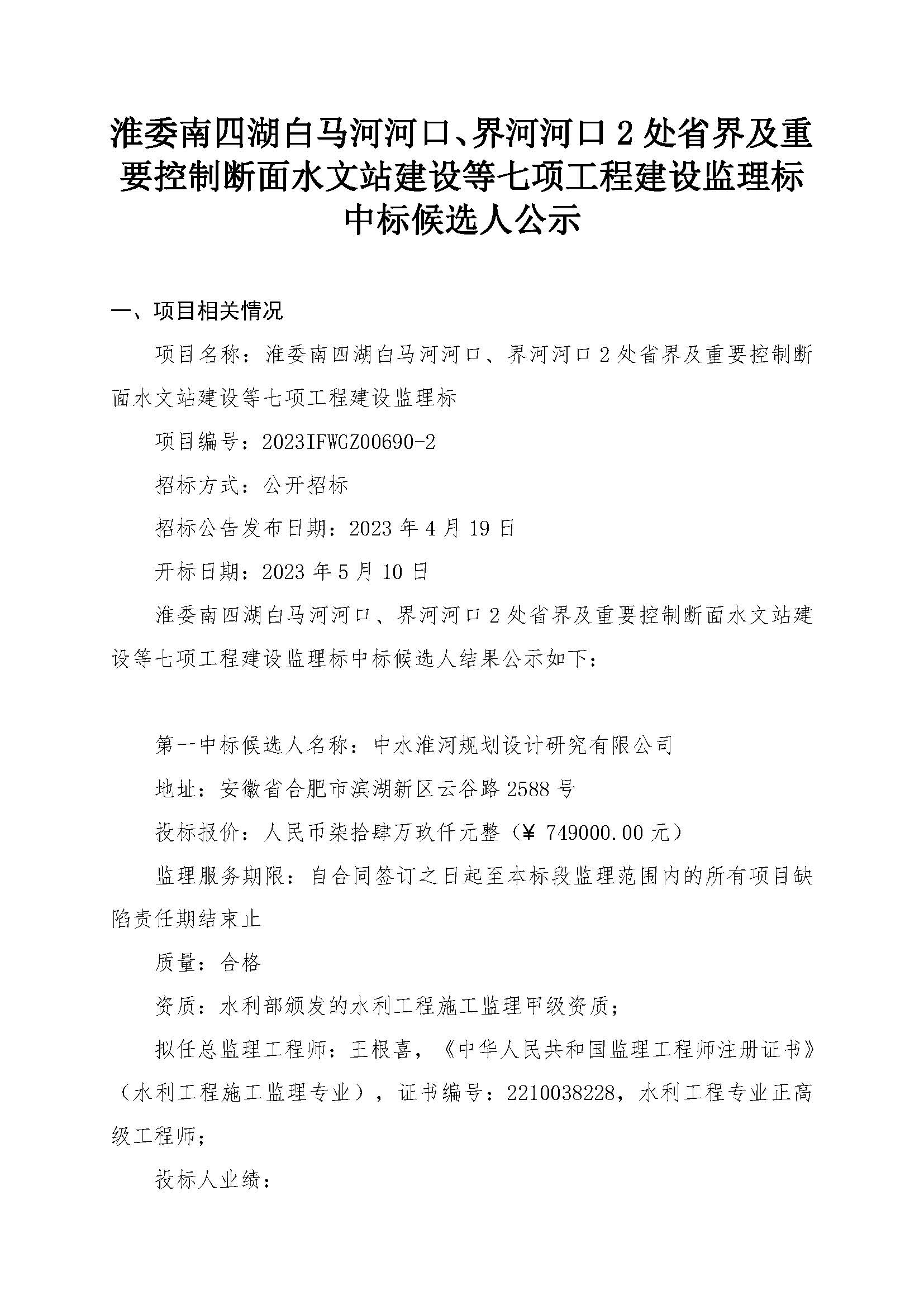 淮委南四湖白马河河口、界河河口2处省界及重要控制断面水文站建设等七项工程建设监理标中标候选人公示